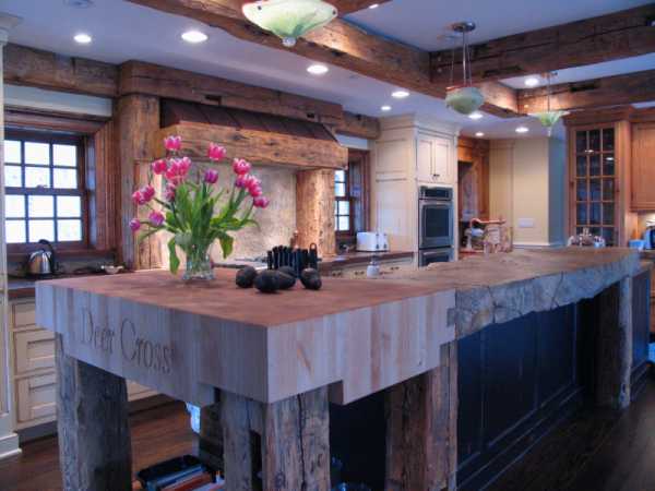 В современных кухнях, расположенных в городских квартирах редко удается реализовать П-образную планировку кухонного гарнитура с установкой обеденной группы – для этого необходимо действительно просторное помещение. В частных городских домах или загородных домовладениях подобный дизайнерский и конструктивный прием осуществить проще. В результате получается уютная и комфортная кухня с невероятно высокой функциональностью, технологичностью и вместимостью систем хранения. Но при всей своей рациональности и наполненности ресурсами, кухонное пространство может выглядеть в стиле кантри, привнося мотивы сельской жизни, которые так органично вписываются в загородное жилье.