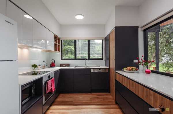 В обычных квартирах п образная кухня с окном/без него не всегда возможна. В таком случае помехой зачастую бывают низкие подоконники, наличие выхода на балконное пространство, неудобно расположены двери, коммуникации и т.п.