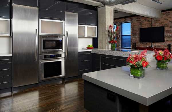 Белый цвет кухонного гарнитура и черный оттенок бытовой техники будут не просто контраст в вашем интерьере создавать, но и уникальности обстановке добавят. Если же для отделки кухни использовать яркие, насыщенные тона, то можно получить действительно нетривиальный подход к оформлению самого практичного помещения в доме или квартире.