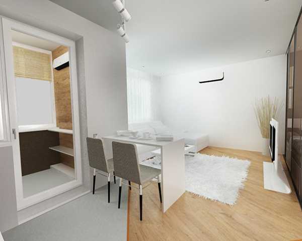 Стал популярен и еще один способ увеличения жилой площади – присоединение лоджии. Чтобы это сделать, убирают часть стены и, конечно же, это возможно только при условии теплого балкона. За счет этого комната станет немного больше.