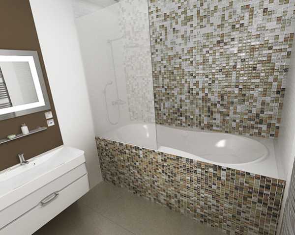 Второй вариант также красочен — только вместо душевого уголка установлена ванна.