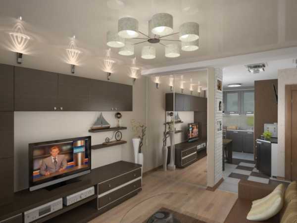 Освещение также создает уют и комфорт и добавляет изюминку дизайну однокомнатной хрущевки, поэтому на него тоже следует обратить пристальное внимание. Отлично подойдут современные точечные светильники – настенные и вмонтированные в потолки, совместно с маленькой люстрой. Было бы неплохо использовать не только глянцевые поверхности, но и зеркала, так как они расширяют пространство.