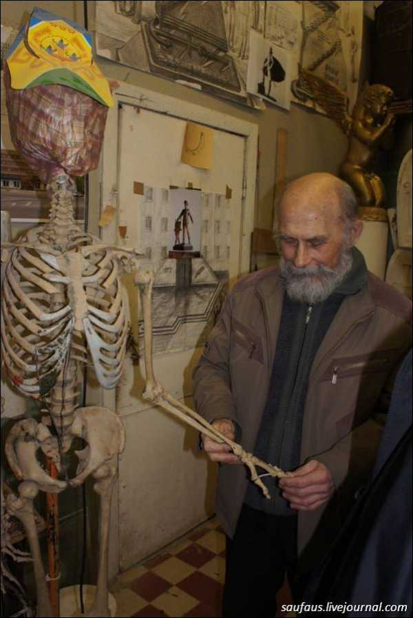 В углу – мечта всех мальчишек – пластмассовый скелет, потому что скульптору без него никуда, ошибаться в анатомии нельзя.