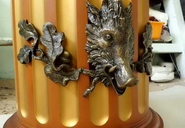 Наши мастера чеканщики работали в СНПО «Реставратор», выполняя работы по реставрации и воссозданию скульптурного металлодекора в интерьерах дворцов Санкт-Петербурга. Они тщательно перечеканивают каждую статуэтку, доводя до совершенства её поверхность на войлочных кругах. Реставрационные работы выполняются с музейным качеством реставрации, а воссоздание скульптур и статуй проводится по согласованию с ГИОП Санкт-Петербурга.