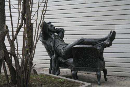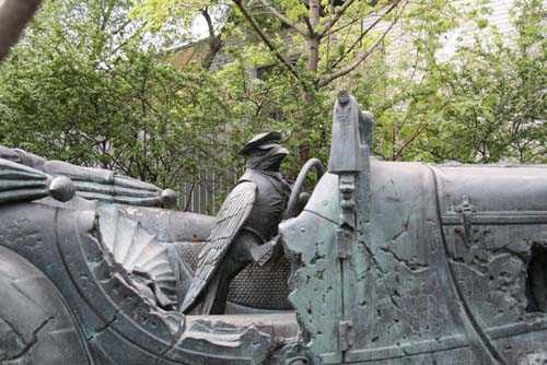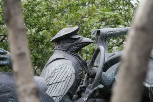 Остальные скульптуры пока продолжают стоять во дворе мастерской. Из примуса, высотой в четырехэтажный дом, скульптор сделал шикарную машину с водителем-грачом. «Грач зажег фары и выкатил в ворота мимо мертво спящего человека в подворотне. И огни большой черной машины пропали среди других огней на бессонной и шумной Садовой.»(с)