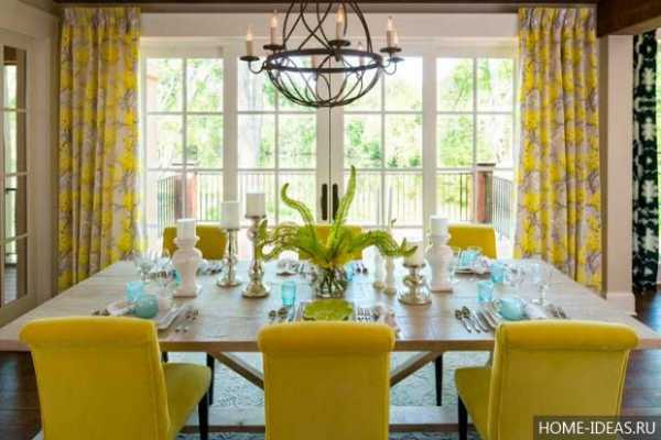 Повседневный семейный обед. Цвета столового текстиля вполне могут подбираться гармонирующие с цветами оформления столовой