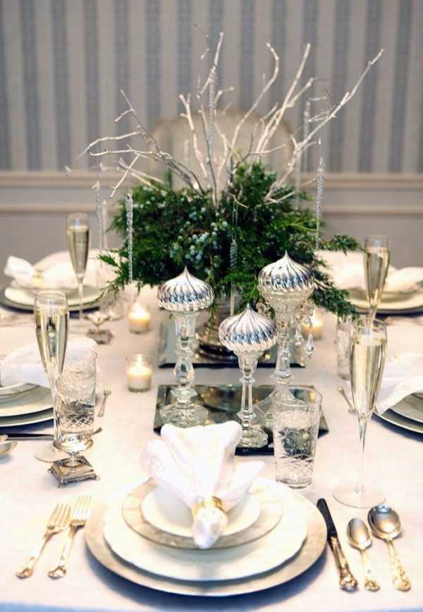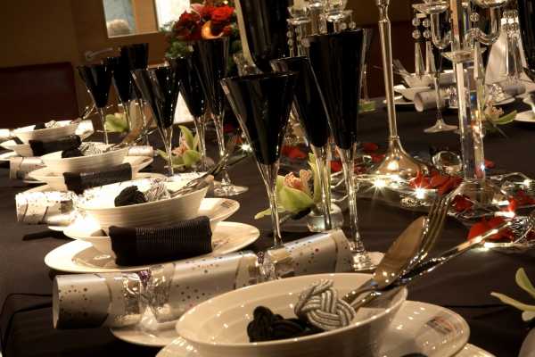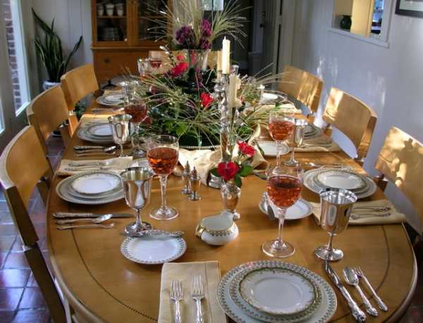 Имеет смысл использовать серебряные изделия, так как они также будут отлично вписываться в общий интерьер, независимо от его стилистики. Цветы присутствуют практически всегда и стали по сути незаменимым атрибутом праздничного стола. Важно, чтобы букеты были оформлены должным образом и в определенной последовательности присутствовали на столе.