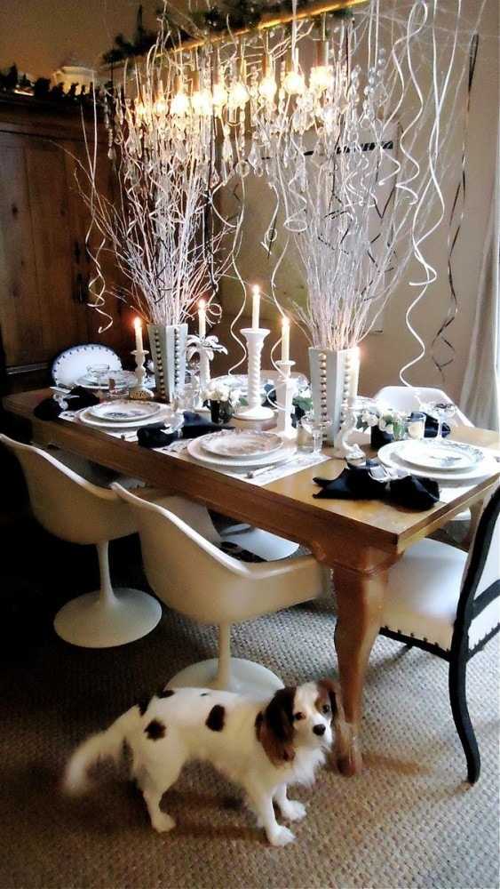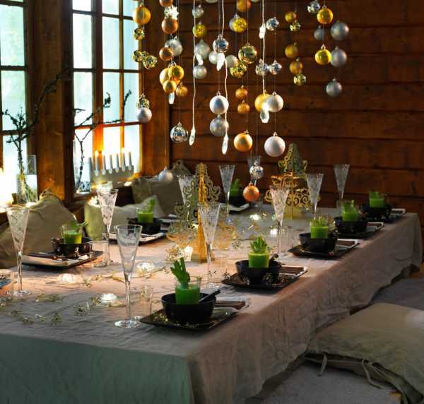 Новый год, Рождество — праздники, на которые собирают застолья вечером. Для их оформления можно использовать диодную иллюминацию, как на столе, так и в остальном помещении