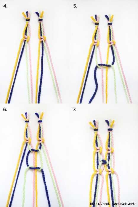 Далее связываем 4 веревки вот такими узлами.