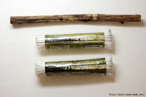 Нам потребуется 60 м. бельевой веревки и несколько деревянных бусин для украшения изделия.