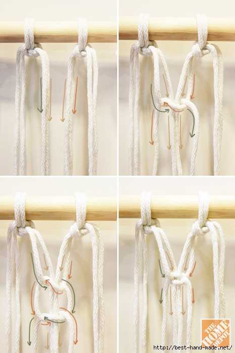 Какую бы схему вы не выбрали, нужно четко соблюдать последовательность плетения и точность выполнения всех узлов Макраме. Ведь изделие, выполненное четко и неспешно, станет украшением дома и гордостью того, кто его создал.