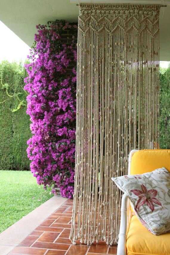 Изделия из макраме органично и естественно вписываются в современный интерьер. Если вы до сих пор ломаете голову, как украсить оконный или дверной проём, советуем обратить внимание на шторы и занавеси из макраме. Их можно использовать как самостоятельный элемент, а можно комбинировать с другими материалами, например, тюлем или органзой.