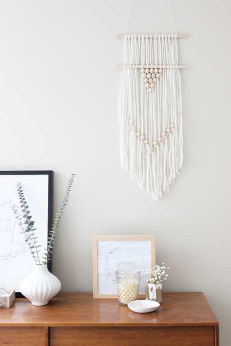 Оформление стены с помощью декоративного панно из макраме