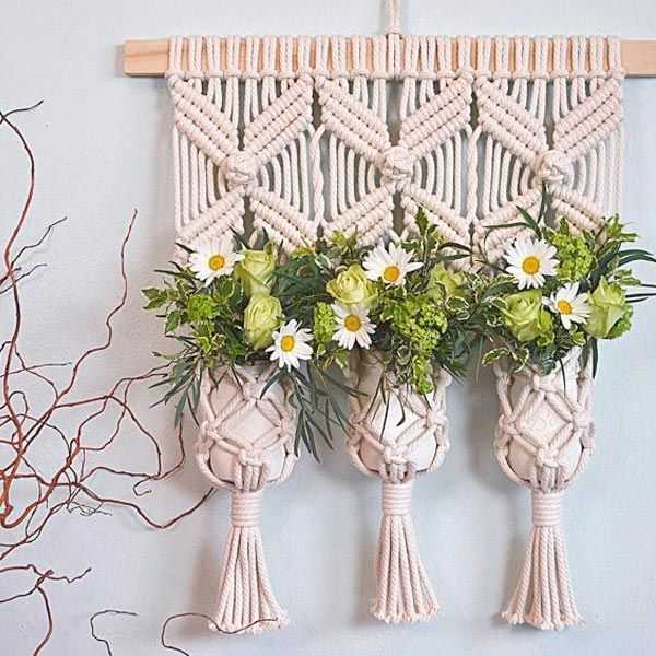 Вязаные кашпо в технике макраме