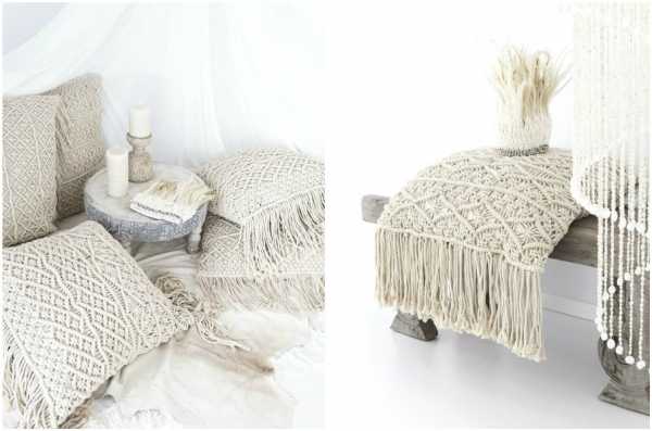 Декоративные подушки, украшенные макраме