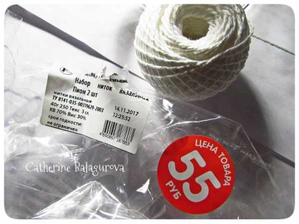 Я купила вязальные нитки «Пион» петербургской фабрики им. Кирова. Их состав: 70% — хлопок, 30% — вискоза. Они плотные, но достаточно объемные и клея берут много (это хорошо для держания формы). Вторая партия у меня была из мулине этого же комбината. Шары из ниток «Пион» мне понравились больше.