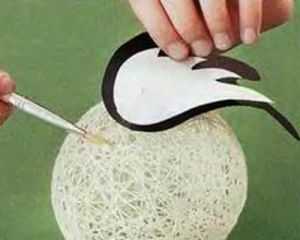 Я просто тащила нитку через стаканчик с клеем, постепенно обматывая ею шарик.