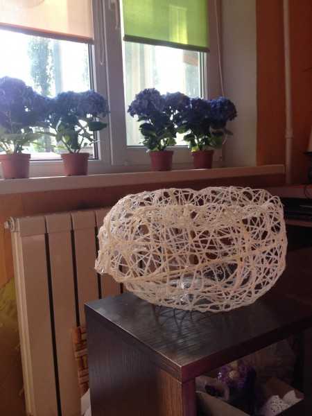 Из ниток можно смастерить не только поделки из ниток для детей в виде различных куколок, симпатичных фигурок зверей, но и картины, вазы или украшения для светильников.