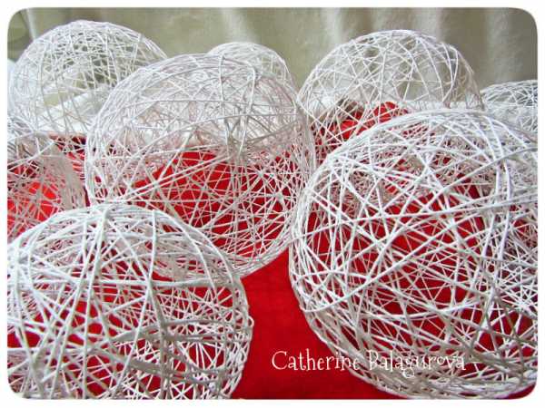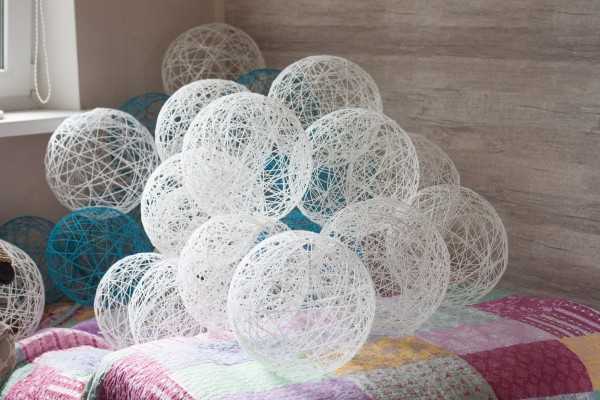 Шары из ниток красивы, воздушны и украсят собою любой интерьер. Более того, таким методом можно сделать практически любой объемный предмет, например, абажур, вазы, фигурки животных, пр.