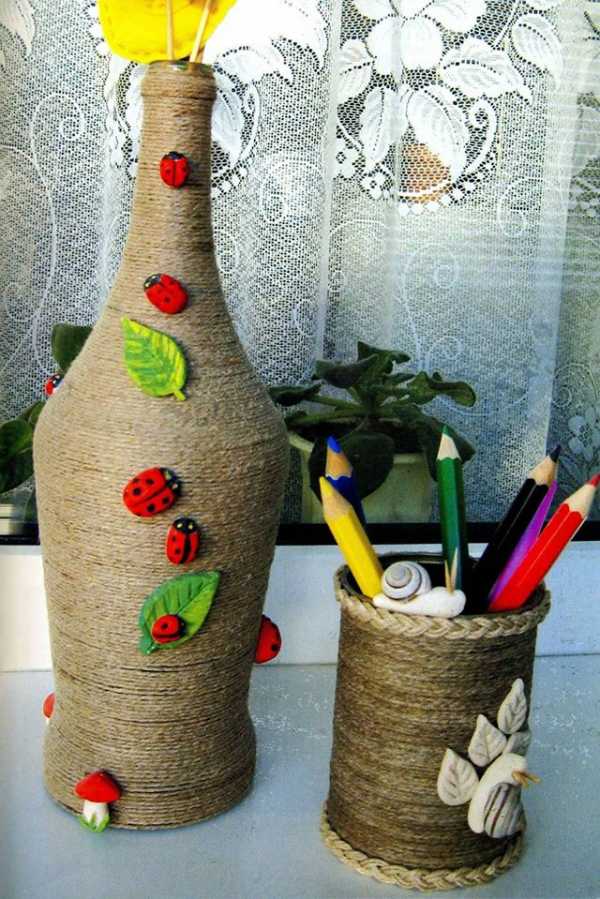 Поделки из ниток своими руками для детей: украшение баночек, бутылочек