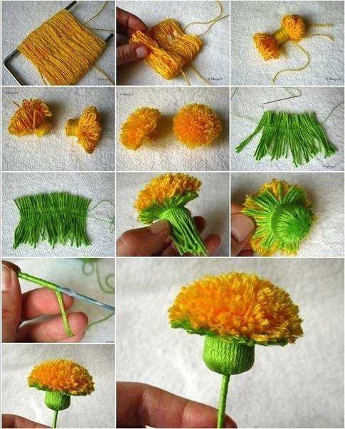 Схема изготовления одуванчика из нитей очень проста и напоминает процесс создания помпонов из ниток.