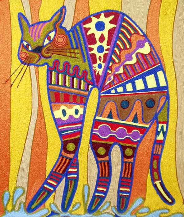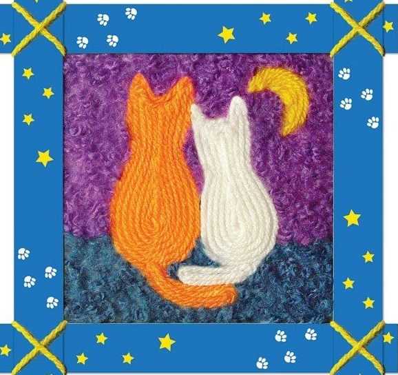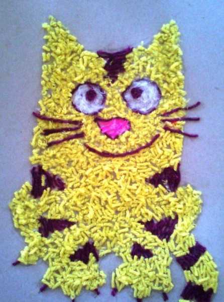 Если вы не знаете, как применить множество небольших отрезков из ниток, которых уже не хватает на помпоны и китицы, то смастерите из них картину. Для этого вам не понадобится большое количество материалов. Хватит всего лишь ножниц, картона и клея, ну и не забудьте про сами нитки.