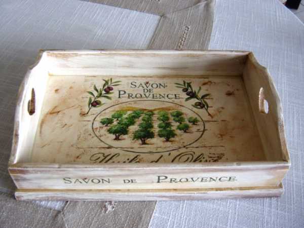 Поднос в стиле декупаж станет прекрасным дополнением к интерьеру кухни или для завтрака в постели. В этой статье мы решили поделиться небольшим мастер классом по декупажу подносов в стиле прованс или шебби шик. Такие подносы чаще всего деревянные, белесые.