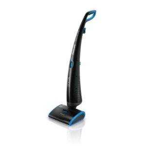 Аккумуляторный моющий пылесос чаще всего имеет вертикальную конструкцию. Как правило, такие агрегаты легче обычных, что, наряду с отсутствием путающегося под ногами шланга, облегчает эксплуатацию пылесоса. При этом заряд аккумулятора имеет свойство заканчиваться, соответственно, и уборка застопориться. А на последующую зарядку потребуется время, за которое пропадет и желание убираться.