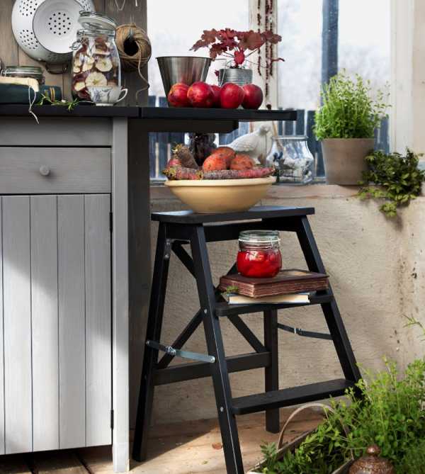 Табурет-стремянка может использоваться как дополнительное место для хранения продуктов