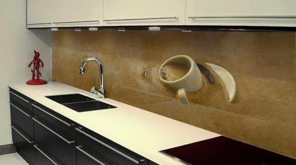 Но не это самое интересное! Примечательно то, что на стеклянную панель можно нанести любой рисунок, какой вам захочется – море с пальмами, шикарную розу или аквариум. Перенести изображение на стену труда не составит. Благодаря широкоформатной фотопечати и современным технологиям картинка переносится на обратную сторону стекла, а его торцы закупориваются так, чтобы туда не смогла проникнуть влага и, следовательно, рисунок не испортится. Кстати, о влаге, преимуществом скинали над обычной керамической плиткой является как раз монолитность цельного куска стекла и отсутствие швов с затиркой, как в случае с плиткой, так что грибок там не появится, это точно! Да и ухаживать за гладкой и ровной поверхностью намного легче.