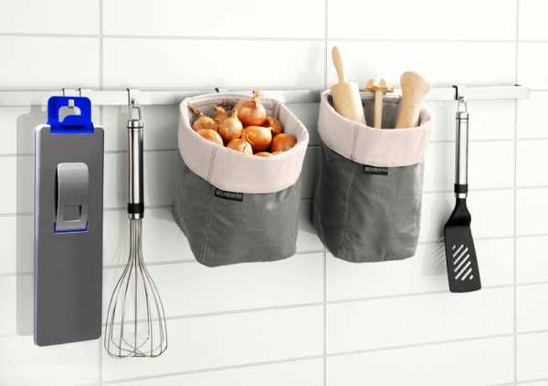 Органайзер для овощей на рейлинге – нестандартное, но, в то же время, практичное решение для маленькой кухниИдея №4 Органайзер для хранения крышек