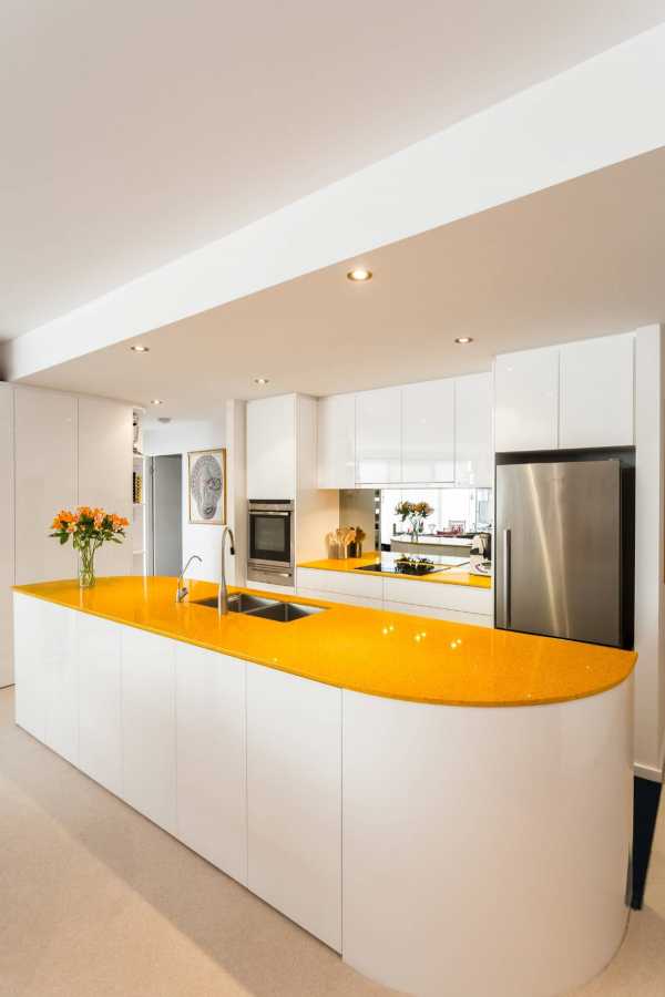 Рабочий стол для кухни – это тот ее элемент, без которого, собственно, не будет и всей рабочей зоны. Согласитесь, даже порезать хлеб или сыр нужно на какой-то поверхности, не говоря уже о процессе приготовления пищи, когда все время нужно что-то резать, тереть и измельчать. Если мы говорим не об эксклюзивных материалах, таких как гранит, мрамор, камень или стекло, то самый обычный способ сделать кухонную столешницу уникальной – это выбрать «веселый» цвет для этого элемента кухонного гарнитура.