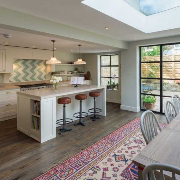 Викторианская эпоха конца XIX века – первый источник вдохновения для эффектного оформления вашей кухни. «Изюминкой» такого помещения станет стилизация рабочей зоны или кухонной плиты под очаг, в имитацию дымохода которого можно спрятать вытяжку.