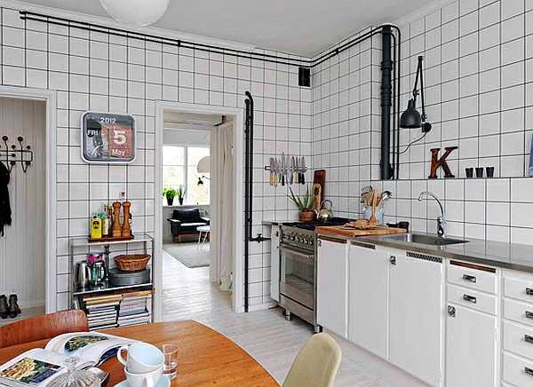 Разнообразить дизайн помогут вещи ручной работы и металлические мелочи: кухонная утварь, блестящие рамки для фото и соответствующая сантехника. Необычные или устаревшие ретро смесители – не повод ломать голову и отправляться в антикварную лавку.