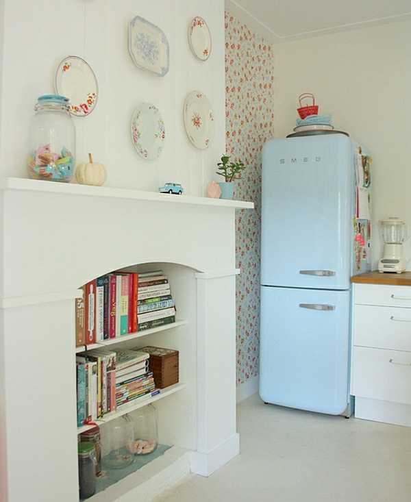 - Если у Вас холодильник нетривиального пастельного оттенка, подберите под него кухонную мебель в тон.