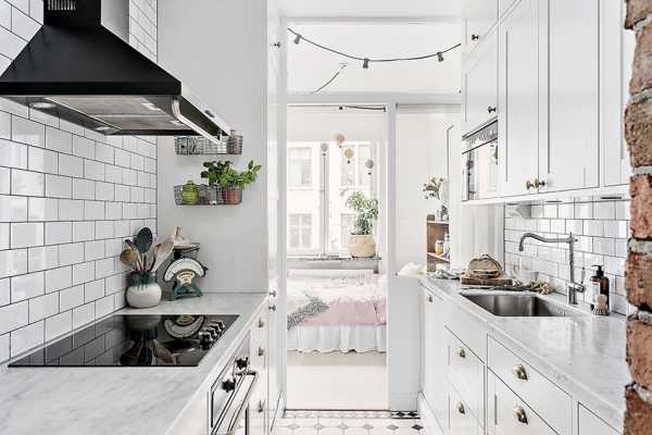 Подсказка: небольшие шторы на уровне напольных шкафчиков запросто скроют современную бытовую технику.