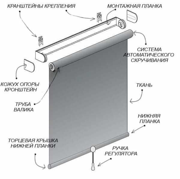 Рольшторы представляют собой полотно из разных материалов, которое накручивается на валик, за счет чего происходит поднятие конструкции.