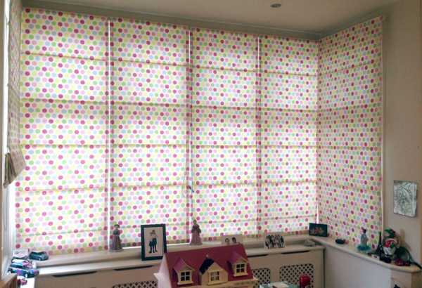 рулонными или римскими. Да и гороховый узор может измениться. Вместо однотипных, упорядоченных кружочков на белом или пастельном фоне появляется целая россыпь горошин, различной расцветки и диаметра.