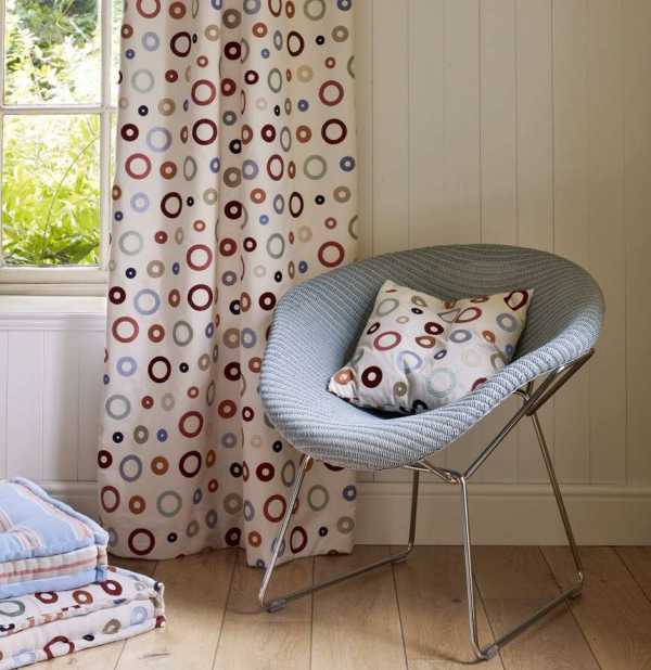 Что касается детской комнаты, то можете дать волю вашей фантазии. Помимо постельного белья, пледа и одеяла, можно повесить прозрачные небесно-голубые шторы с розовыми кругами разной формы. Это будет смотреться мило и не бросаться в глаза. Ведь спальня предназначена для спокойного отдыха.