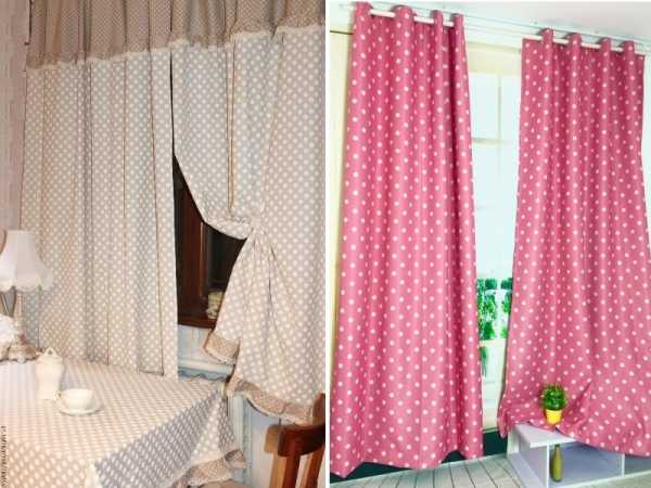 Чаще всего для пошива штор в горошек используются простые натуральные ткани: