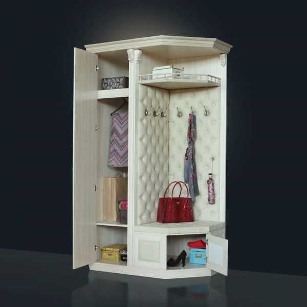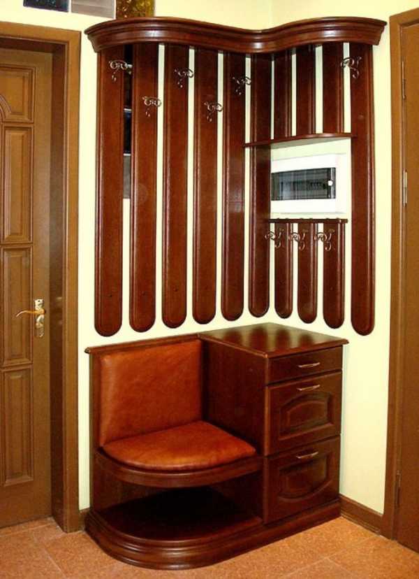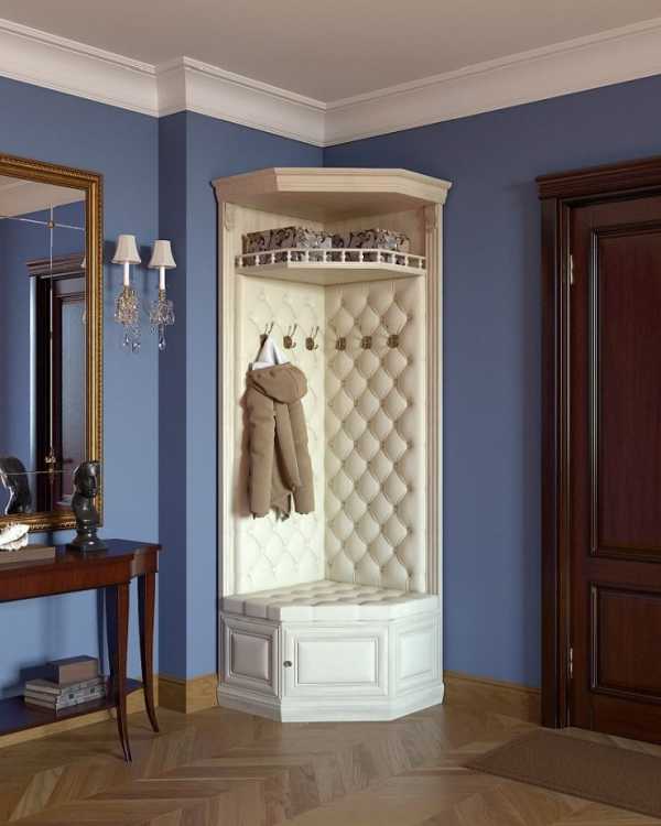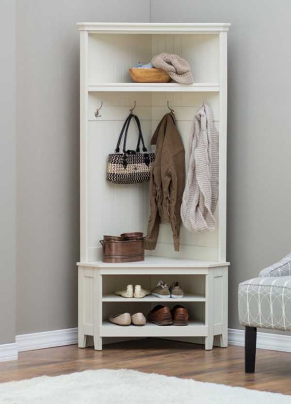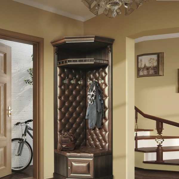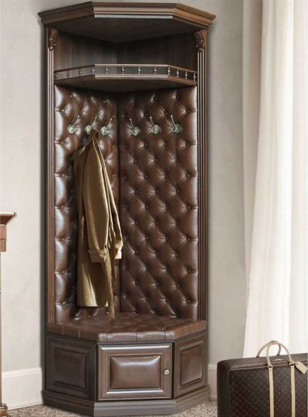 Они хороши тем, что не занимают много места. Их устанавливают в угловой части, благодаря чему удобно вешать верхнюю одежду.