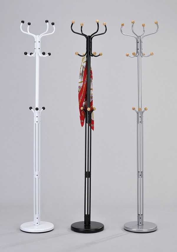Металлические. В данном случае предпочтение отдается напольным конструкциям с наличием крючков в несколько рядов. Помимо этого, есть еще и вешалки настенные в прихожую, разновидности которых определяются в зависимости от общего количества крючков. Данный вариант отличается еще и многообразием цветовых решений.