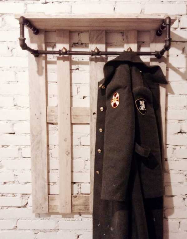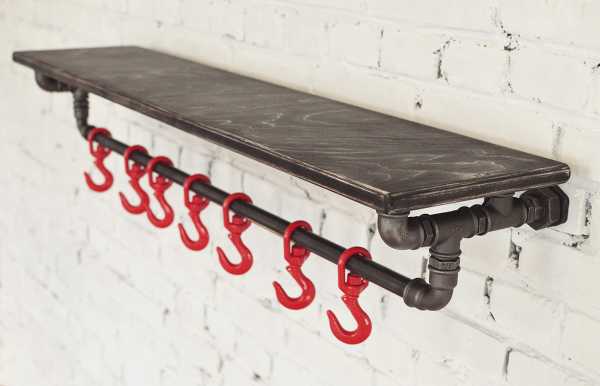 Дом, выдержанный в стиле лофт, хорошо дополняется простой напольной конструкцией — стандартную вешалку можно заменить перекладиной, установленной на стойки. Дополняем все это дело вешалками и готово.
