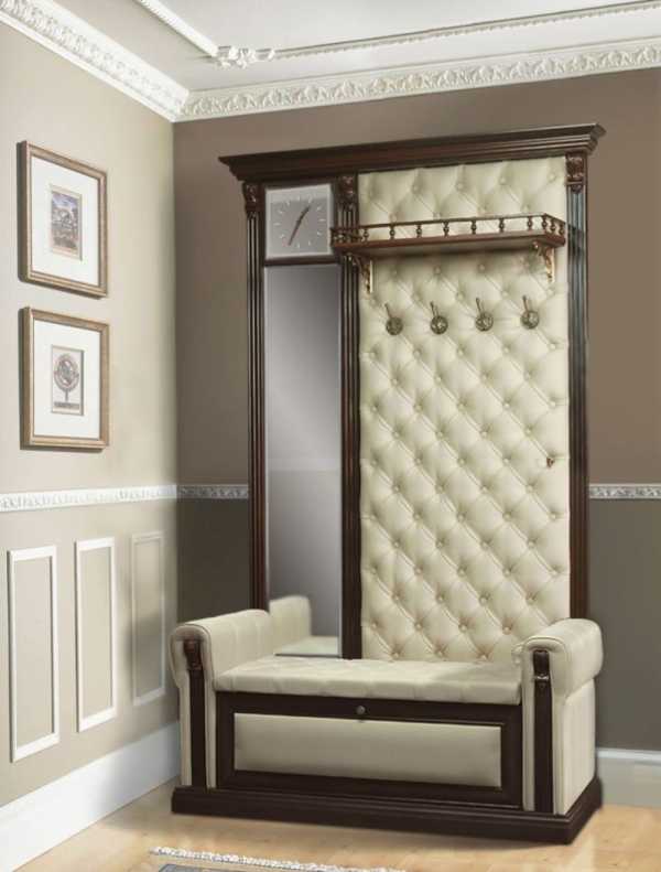Еще одно интересное решение – тумба с вертикальной вешалкой в прихожую. Подойдет для прямоугольных помещений, в которых желательно сэкономить пространство. Для комнаты в классическом стиле, дополните вешалку кожаными элементами.