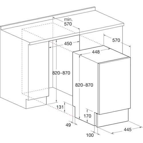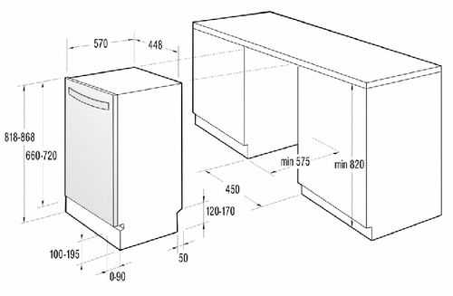 Однако встречаются и нетипичные машинки, которые интегрируются в ниши гарнитуров, изготовленных под заказ. Ширина таких устройств обычно составляет 55 см, что позволяет встраивать такие ПММ в мебель. Стандартная высота данных приборов равна 44, а глубина – 50 см.