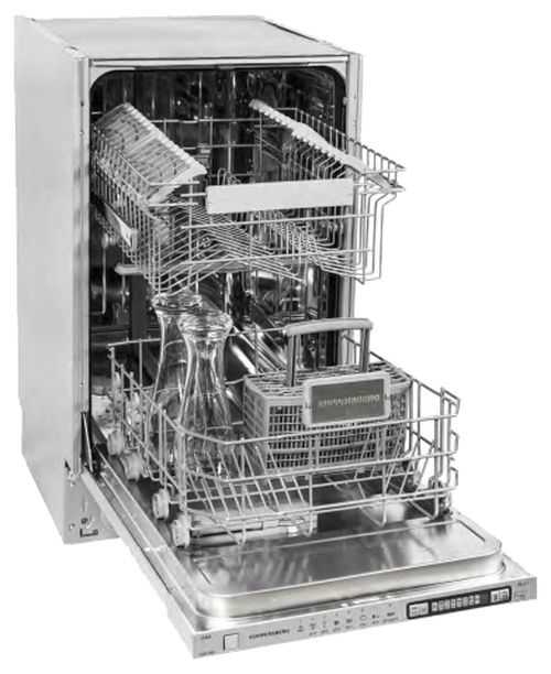 Узкие посудомойки имеют те же параметры и отличаются только по ширине (45-54 см). Вместительность этих устройств меньше, однако они способны удовлетворить потребности небольшой семьи из 2-4 человек. Узкие агрегаты позволяют мыть до 10 комплектов посуды за 1 раз. В случае необходимости можно купить самую узкую модель, ширина которой составляет всего 44,5 см.