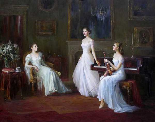 Steve Hanks (1949-) Девочки играют на фортепиано