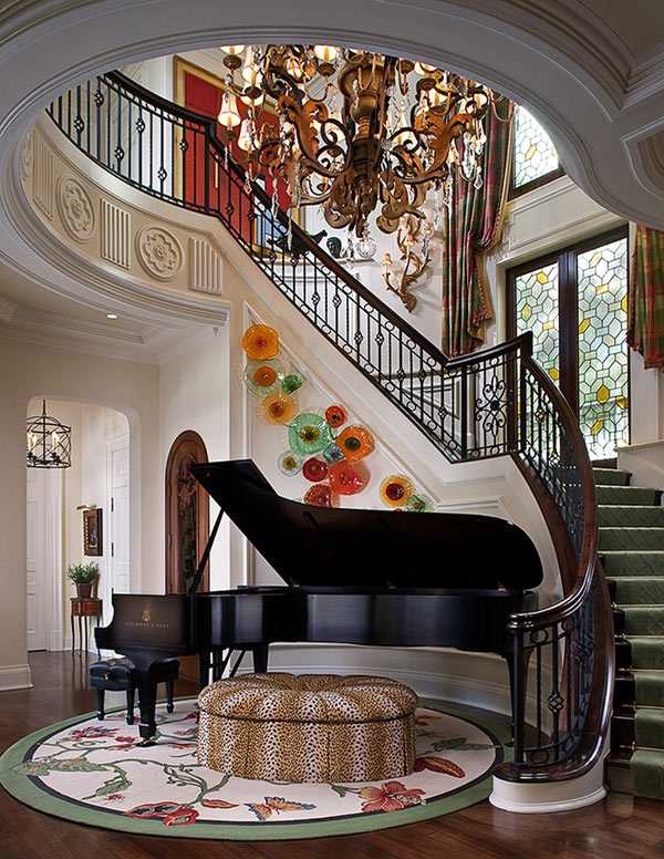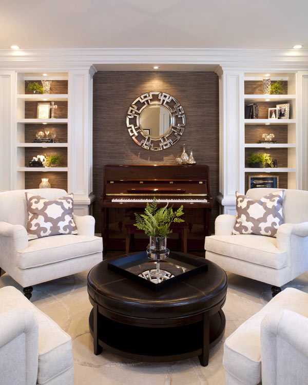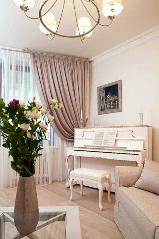 В первую очередь определитесь, в какой комнате будет стоять пианино. Чаще используют гостиную, холл или детскую, в зависимости от того, кто планирует использовать инструмент. Если площадь все же позволяет, можно создать отдельный «музыкальный» уголок, используя подиумы, яркие ковры, специальное освещение, отделку пола. Главное, чтобы пианино не загромождало комнату.