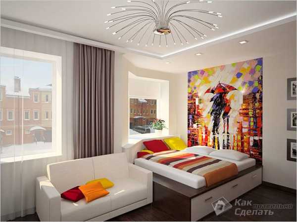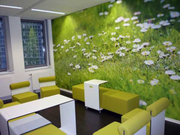 Для оформления интерьера цветными изображениями используется наиболее открытая и свободная от мебели стена или ее часть. Не рекомендуется заклеивать все стены фотообоями, так как визуально комната станет меньше.