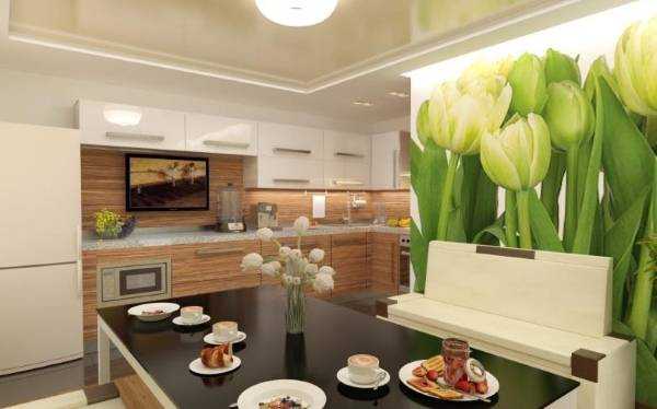 Таким образом, с помощью фотообоев можно любую кухню, даже ничем не примечательную, сделать оригинальным и уютным уголком.